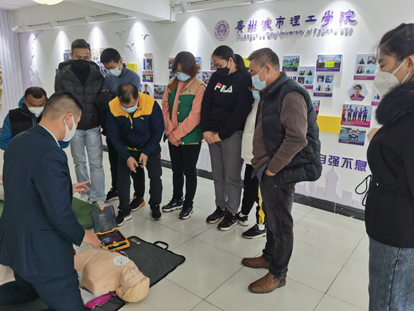 随后,王旭文从突发事故进行施救的法律支撑、施救的环境背景条件、紧急救援的操作规范流程三个方面进行培训讲解,重点讲授了实施紧急救援的正确操作步骤,详细介绍了体外除颤仪(AED)的操作步骤、利用仿生模型演示了心肺复苏的按压手法及实用操作。全体人员认真学习,积极提问,王旭文对现场提出的各项疑问都做了详细解答。