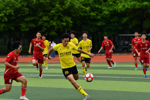 经过一个多月的激烈比拼,决赛于18日下午在电气工程学院和管理学院之间展开。随着裁判一声哨响,院系杯总决赛的比赛正式开始,电气学院队和管理学院队的球员们蓄势待发,为着冠军荣誉展开对决。上半场开场之后管理学院迅速进入状态,尽量将球控制在对方半场,并通过配合屡次冲击对方禁区造成威胁。电气学院抗住开场的冲击之后经过短暂调整,加强了中场的拼抢和长传调动,频频在对方禁区内制造威胁。很快电气学院的努力收到了成效:比赛第32分钟电气学院前场踢出精彩配合,7号江锦强在边路接到队友精妙过顶直塞后突入禁区,扣过对方门将转身推射破门,皮球直挂死角,1:0!电气打破场上僵局。下半场,已经在悬崖边缘的管理学院展开猛烈反扑,但电气学院手握一球领先进一步加强巩固防守阵型,多次化解对方进攻并伺机寻找扩大比分的机会,第62分钟电气学院经过多人配合将球传到20号牛文锐,他用精妙的连续盘带技术在对方前场获得空间后起脚远射,可惜皮球稍稍高出。在比赛临近末尾,电气学院带球队员在管理学院禁区线附近摔倒,现场主裁示意技术台启用VAR技术介入,进一步维护判罚的准确性,值得一提的是我校是广东省首家将VAR技术应用于大学生校园足球赛的高校。随着终场哨音响起,电气学院最终凭借江锦强一锤定音的进球战胜了管理学院获得了本届院系杯的冠军!
