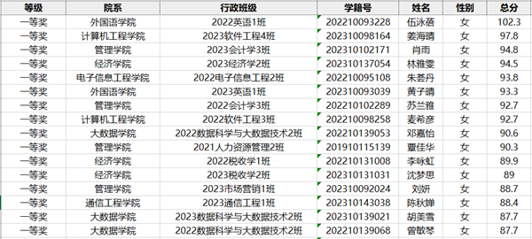 经过激烈角逐,来自土木工程学院的陆益洲同学以106分的总成绩获得男子组第一名,来自外国语学院的伍泳蓓同学以102.3分的总成绩获得女子组第一名。在同学们普遍反映参加体质测试最难的引体向上项目中,来自土木工程学院的黄浩鑫同学以完成46个的总数拔得头筹,且本次比赛的前八名均在30个以上。据了解,和黄浩鑫同一个班级一起参赛的4名同学均有参军入伍的经历。赛后,他激动地说,学校举办的本次比赛非常有意义,能够让他们这些多年保持运动习惯的同学们酣畅淋漓地同场竞技,在感受运动竞技快乐的同时能够更加积极向上的面对学习和生活。