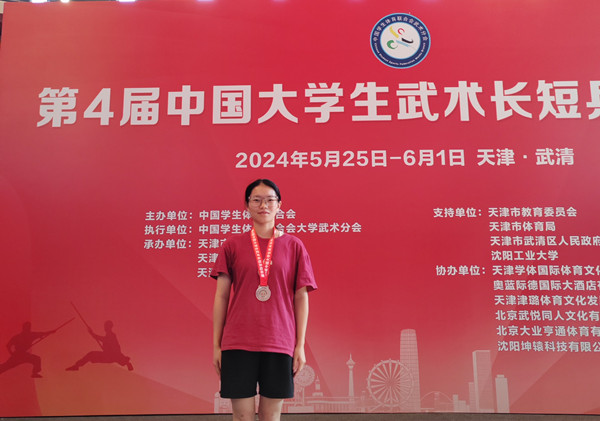 本网讯(记者 马伯韬)5月25日至6月1日,由中国学生体育联合会主办,中国学生体育联合会大学武术分会执行,天津市武术协会承办的第4届中国大学生武术长短兵锦标赛在天津武清区举行。我校体育部长短兵队教练员马伯韬带领李阳、秦天赐宇等7名长短兵队成员参加了甲A组包括男子、女子的长兵以及短兵项目的比赛。经过多轮激烈的体能与技术之间的比拼,我校长短兵队最终揽获1个季军和4个第五名的成绩。